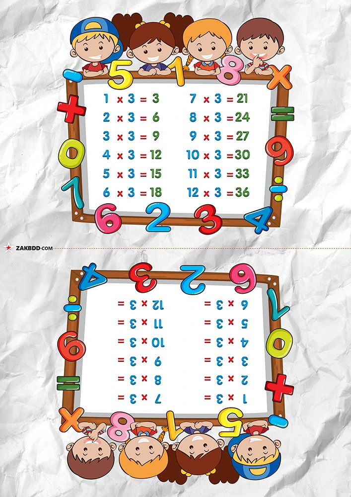جدول الضرب ثلاثة وأربعة