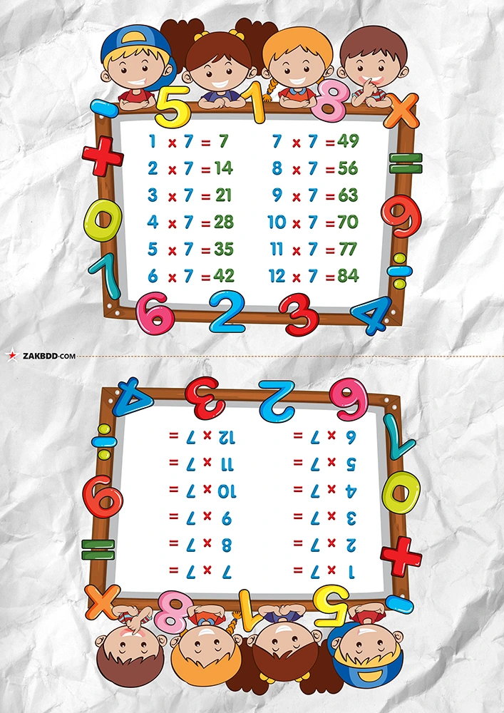 جدول الضرب سبعة وثمانية